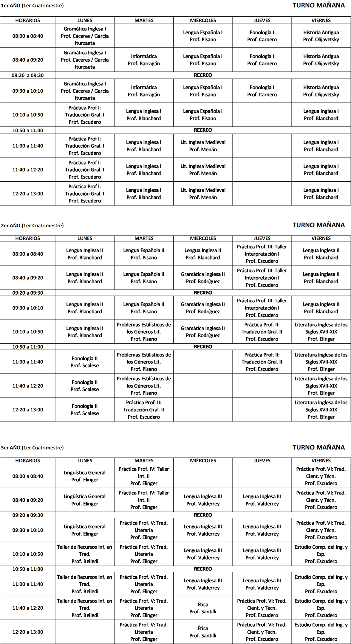Horarios 1° cuatrimestre 2025 TN - Traductorado