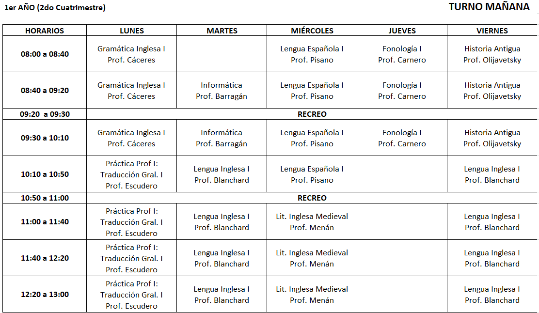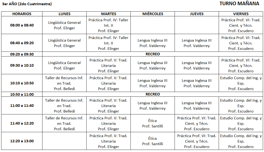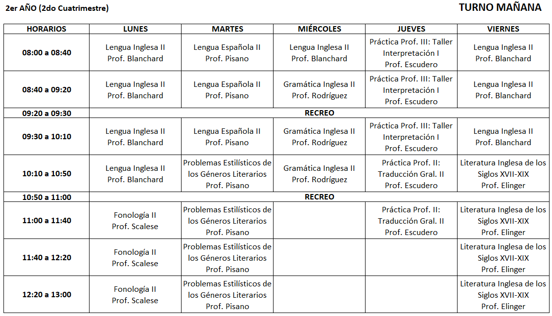 Horarios 2° cuatrimestre 2025 - TN Traductorado