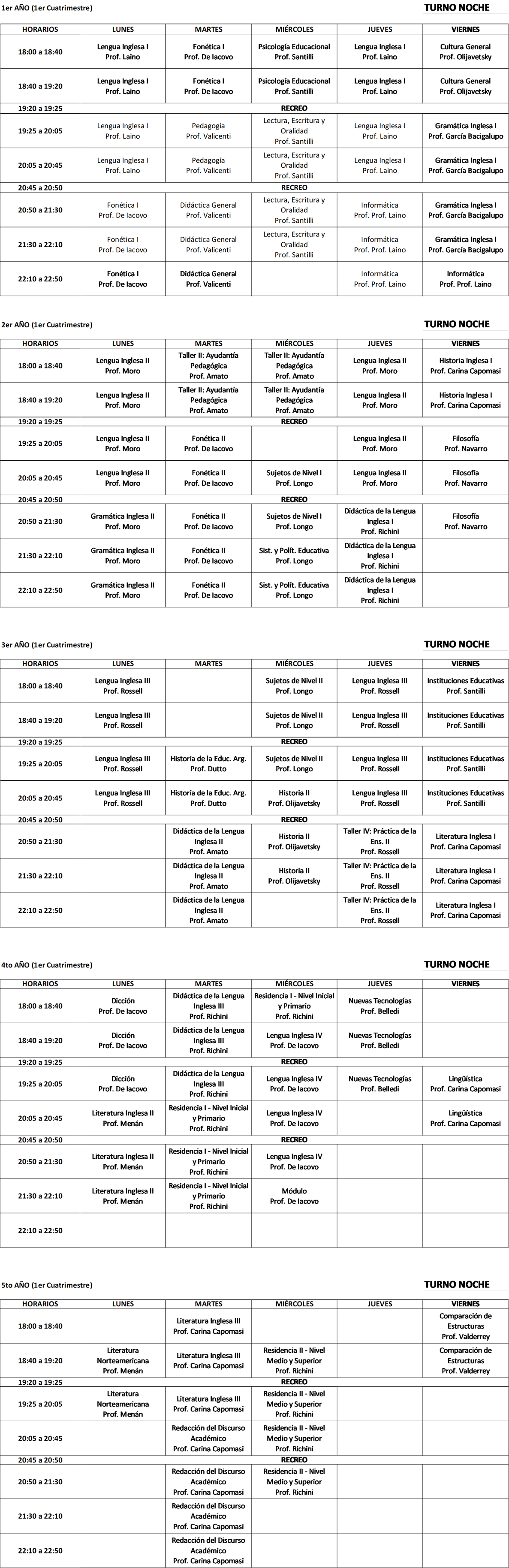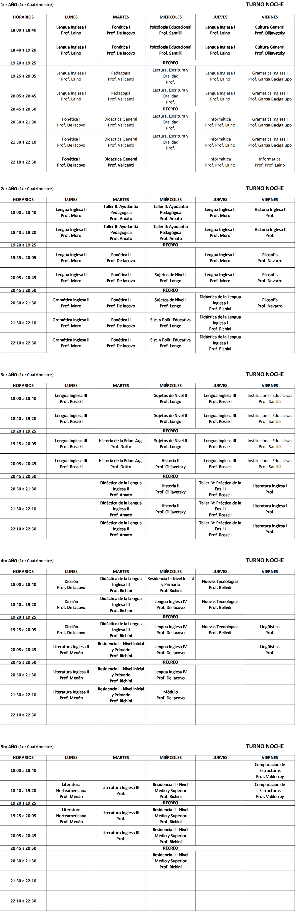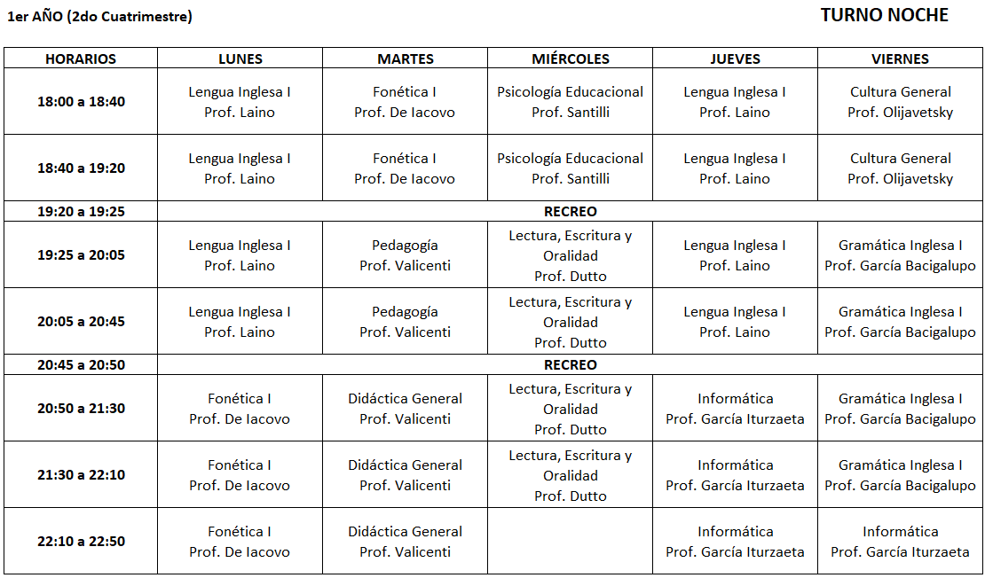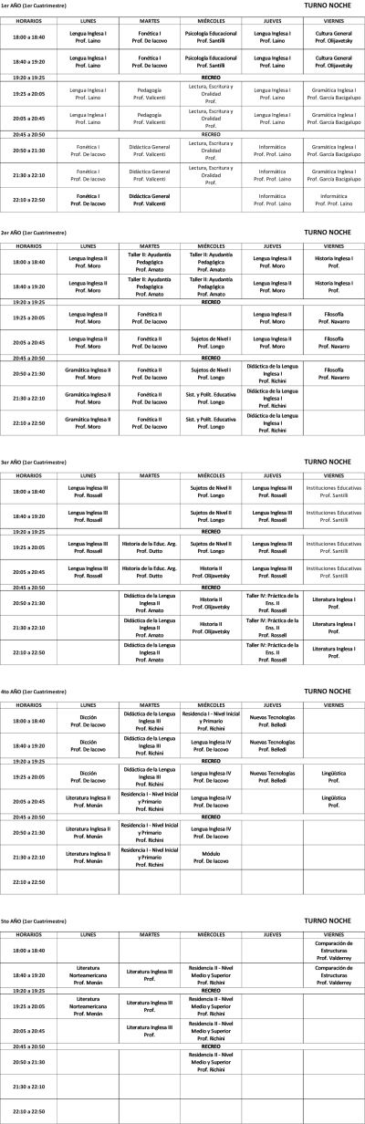 Horarios 1° cuatrimestre 2025 TN - Profesorado