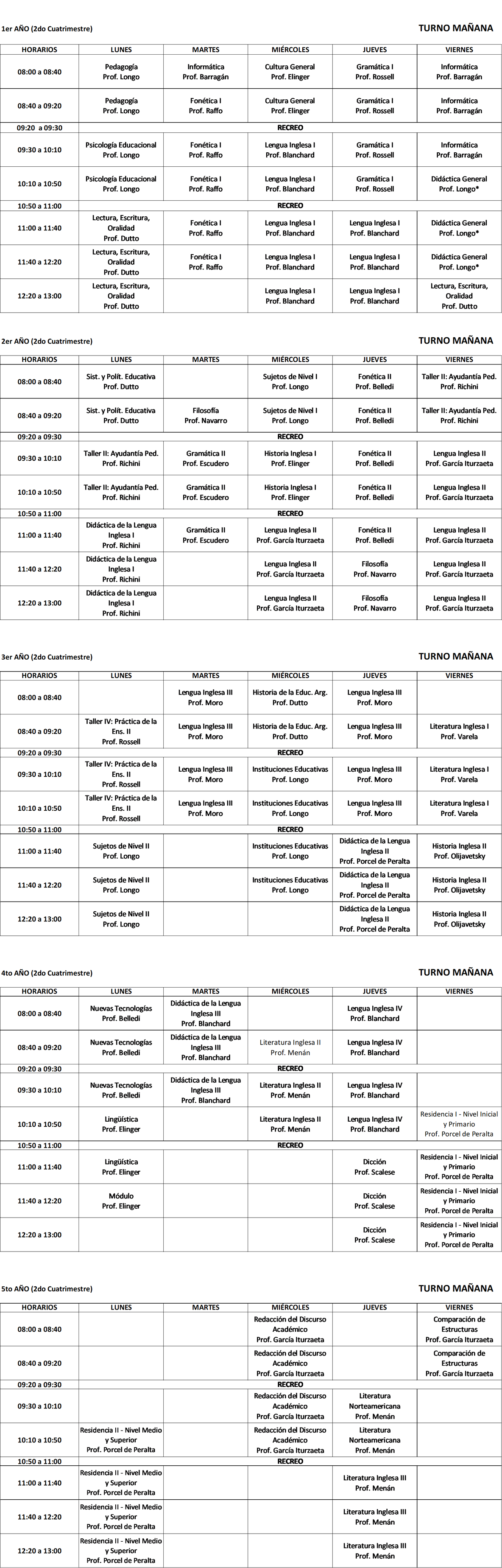 Horarios 2° cuatrimestre 2025 - TM Profesorado
