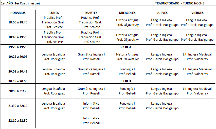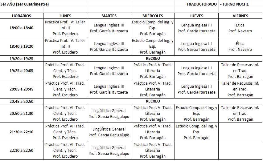 Horarios 1° cuatrimestre 2025 TN - Traductorado
