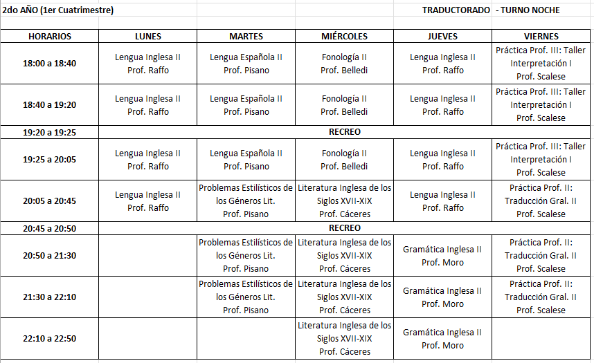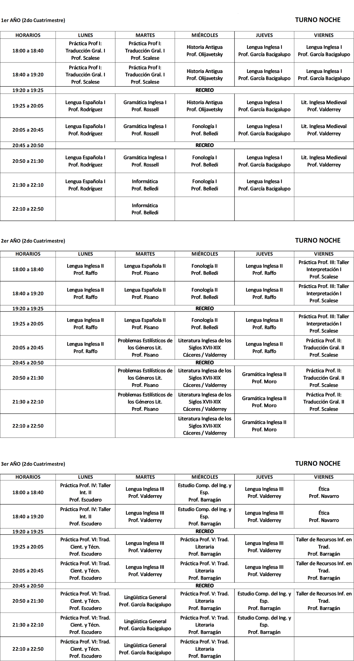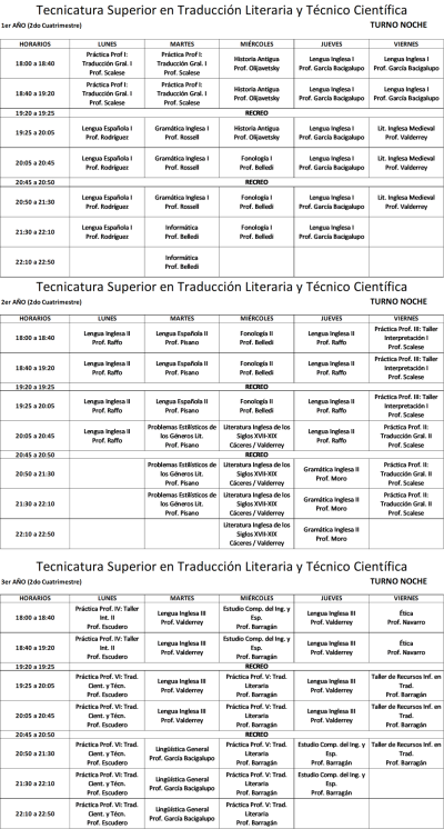 Horarios 2° cuatrimestre 2025 - TN Traductorado