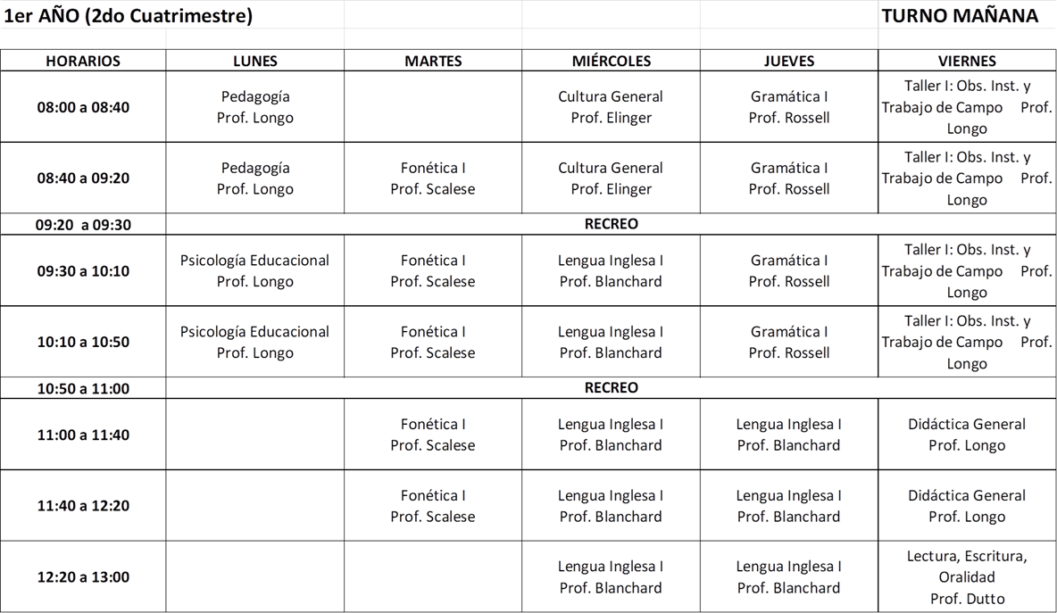 Horarios 1° cuatrimestre 2025 TM - Profesorado