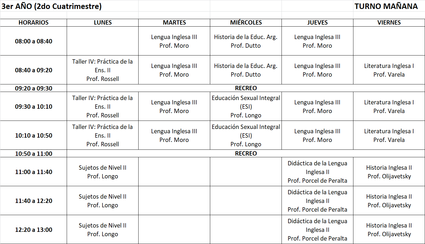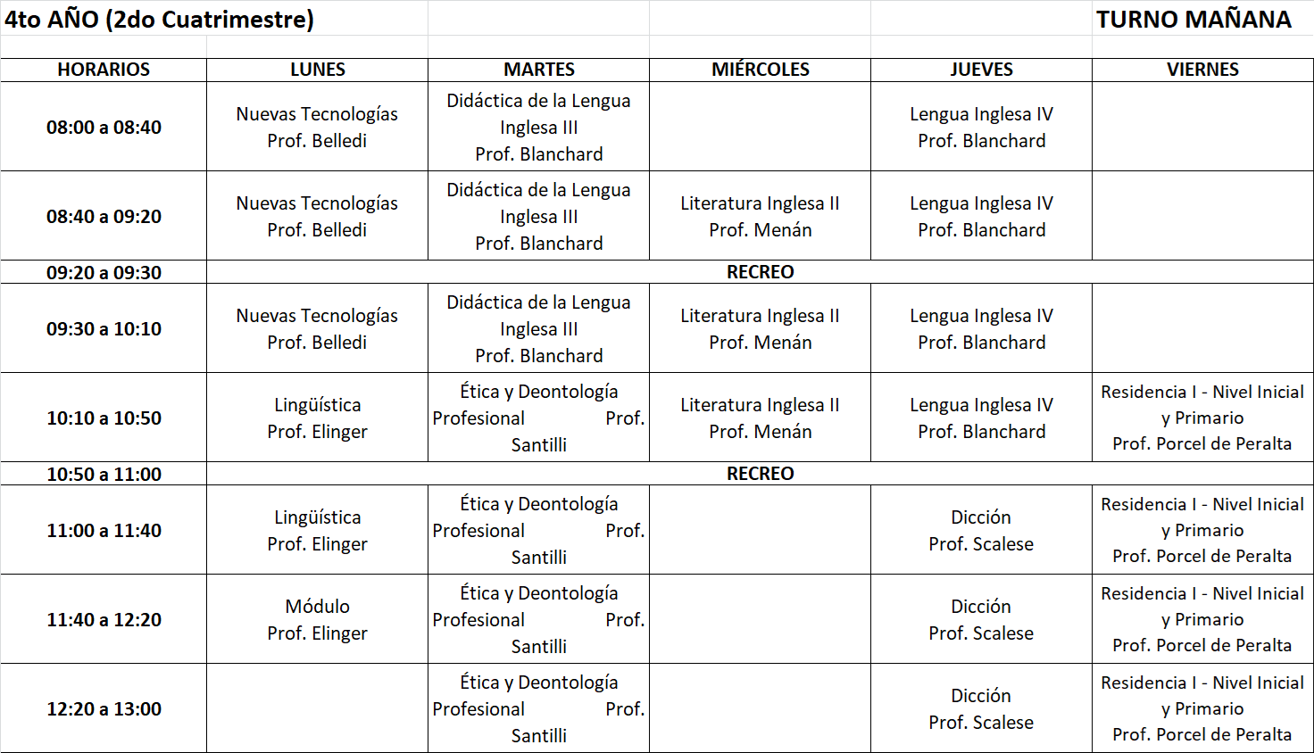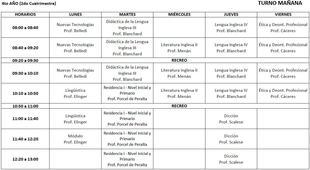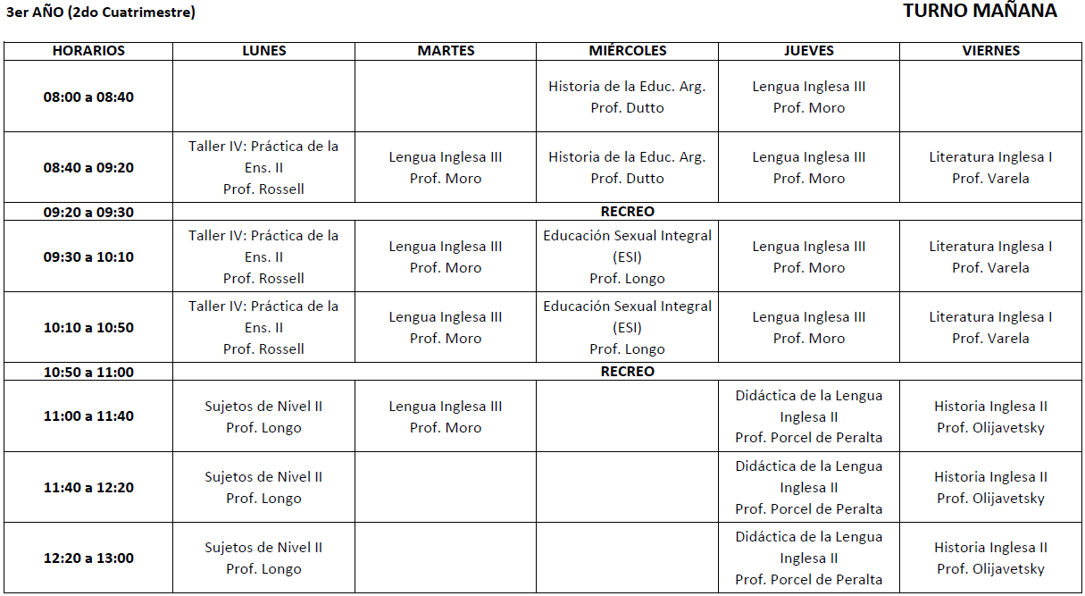 Horarios 2° cuatrimestre 2025 - TM Profesorado
