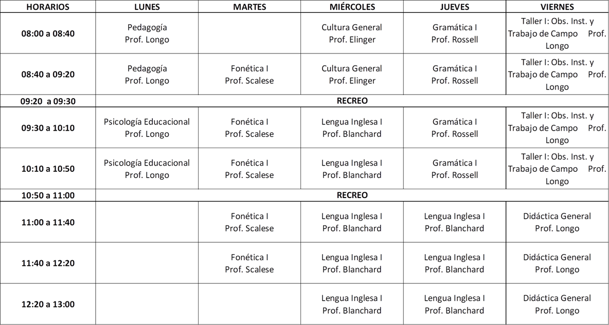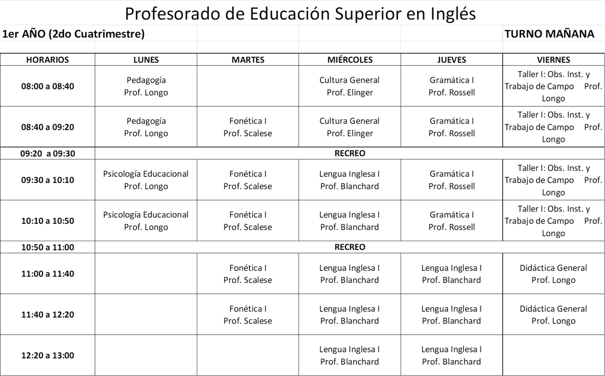 Horarios 1° cuatrimestre 2025 TN - Profesorado