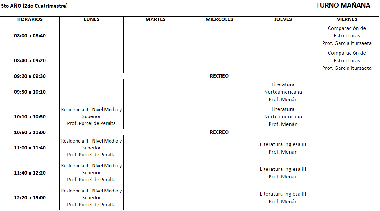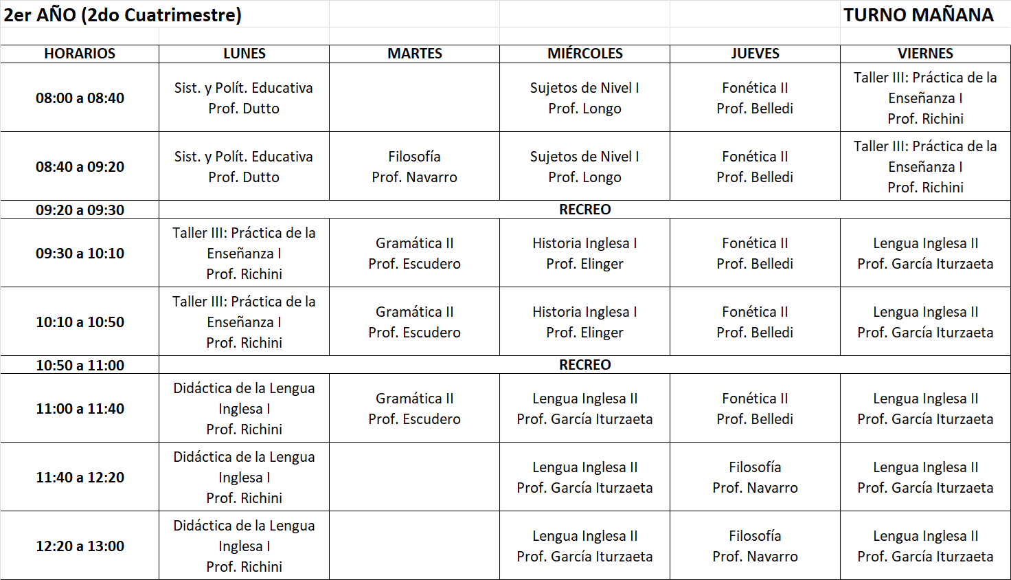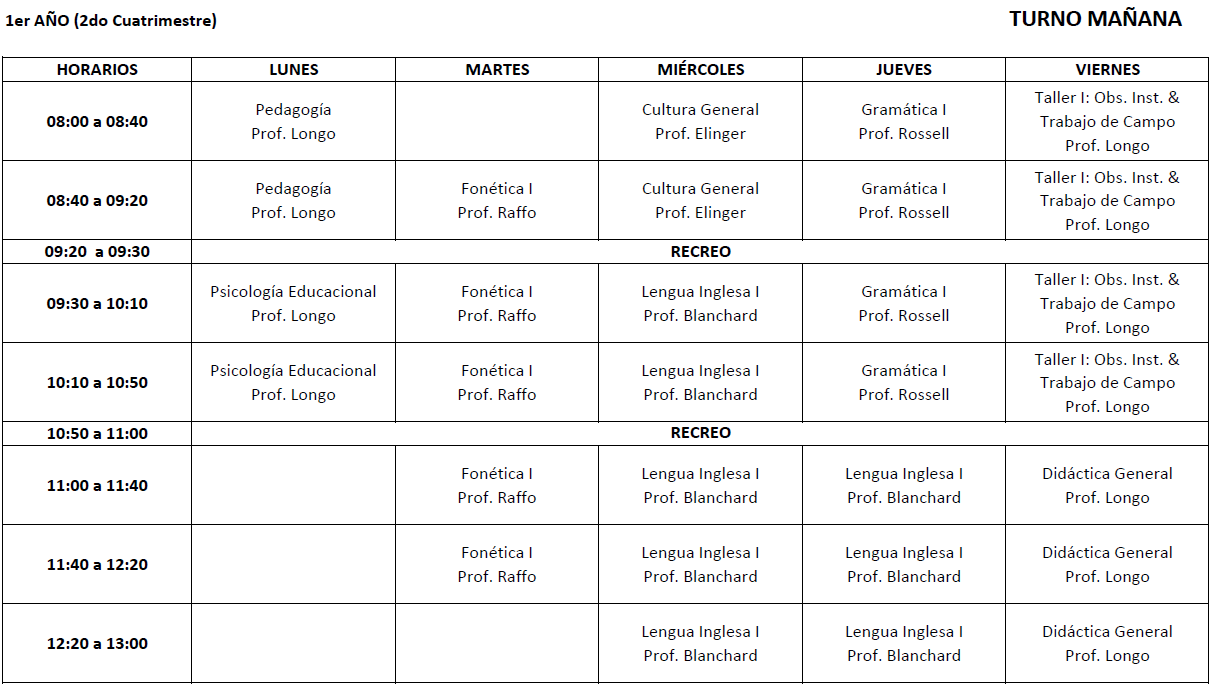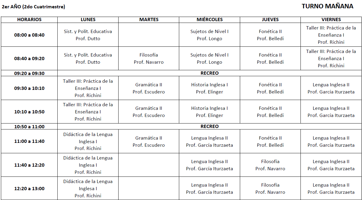 Horarios 2do cuatrimestre