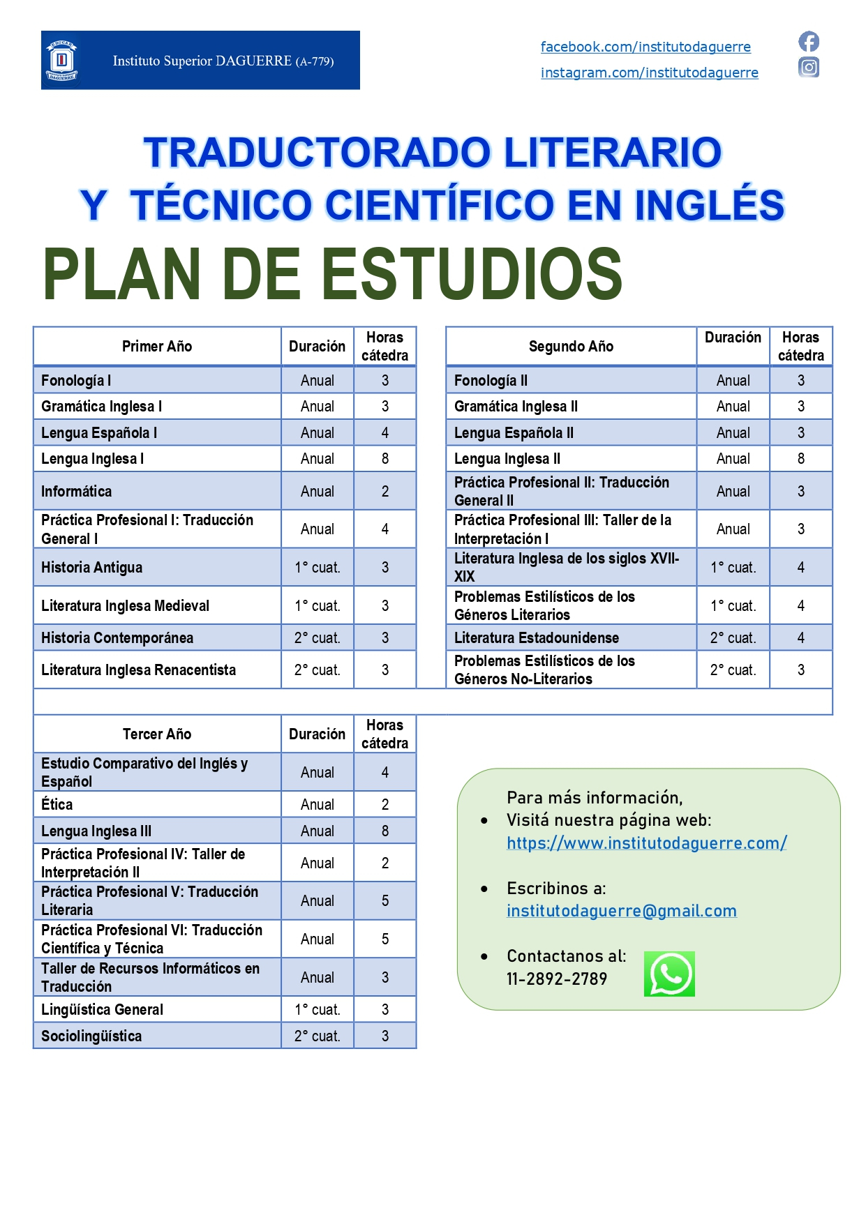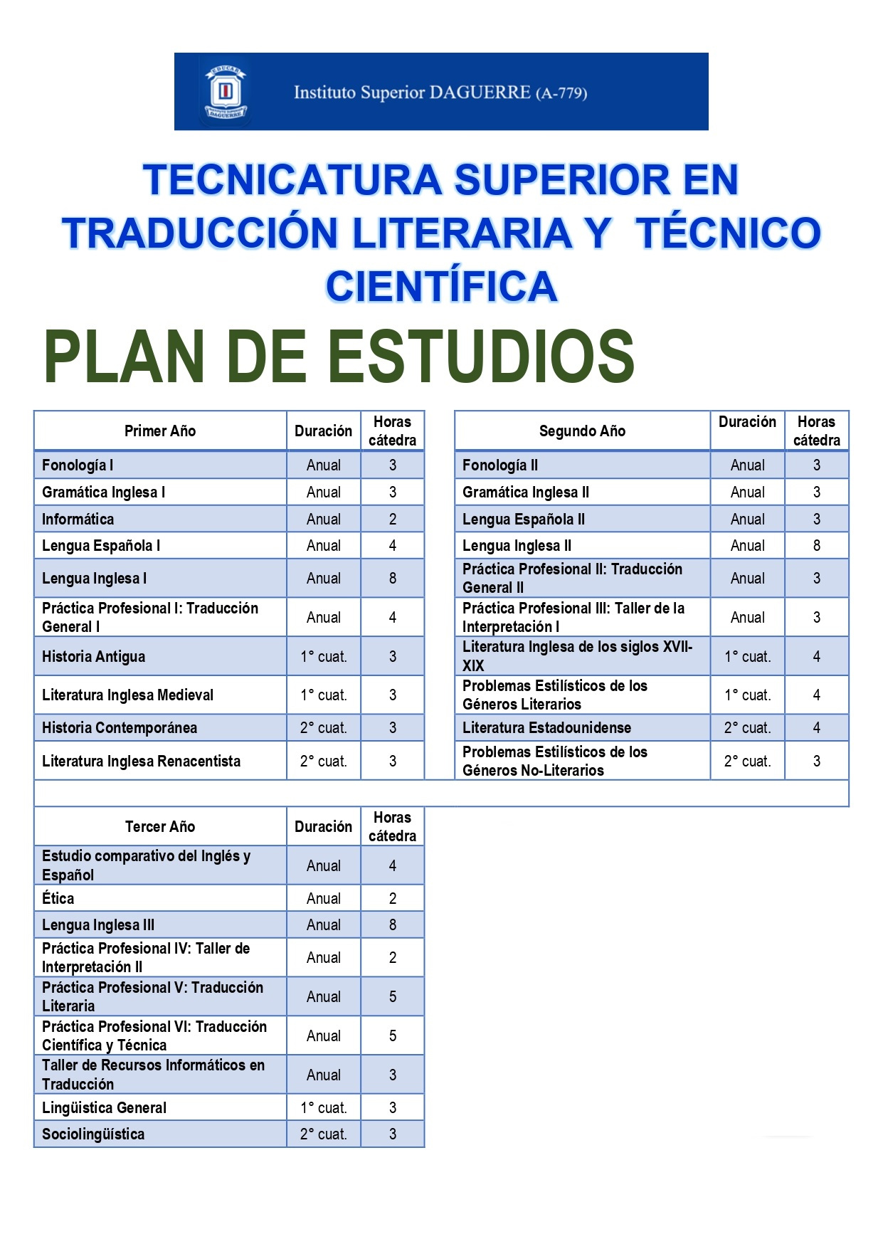 TECNICATURA SUPERIOR EN TRADUCCIÓN LITERARIA Y TÉCNICO CIENTÍFICA